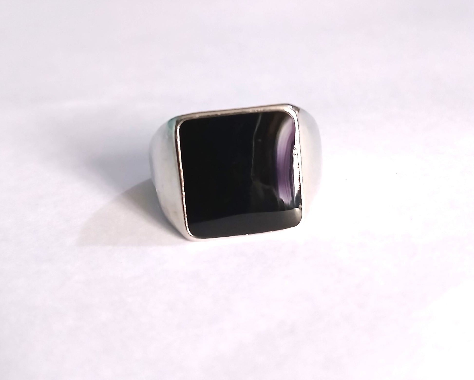 This silver ring features a shiny black finish like topaz, inspired by the fashion of South C Nairobi streets. A bold, stylish accessory for any occasion.